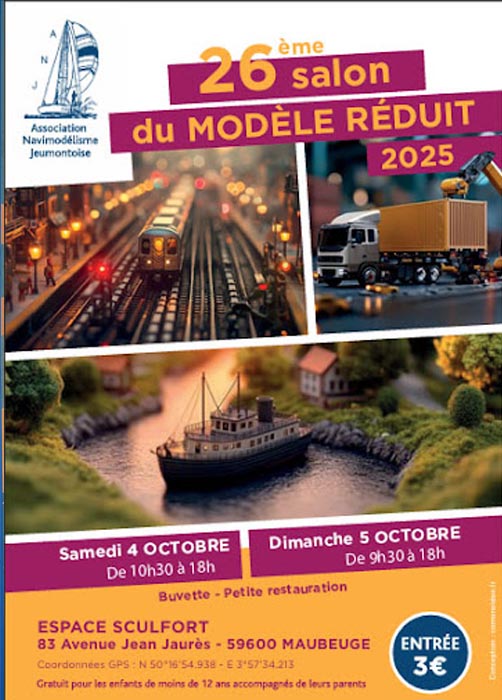 26ème Festival du modèle réduit 2025, modélisme pluridisciplinaire, organisé par l’ANJ59 (Association de Navimodélisme Jeumontoise), à l’espace Sculfort de Maubeuge